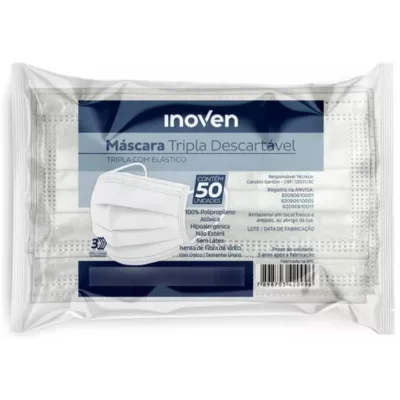 MASCARA CIRURGICA TRIPLA COM ELASTICO 50 UN INOVEN